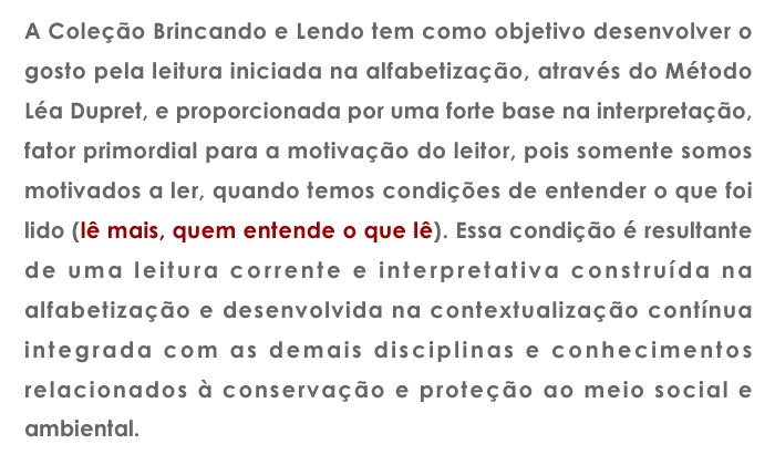 Também utilizado como material de apoio do Método Léa Dupret de Alfabetização.